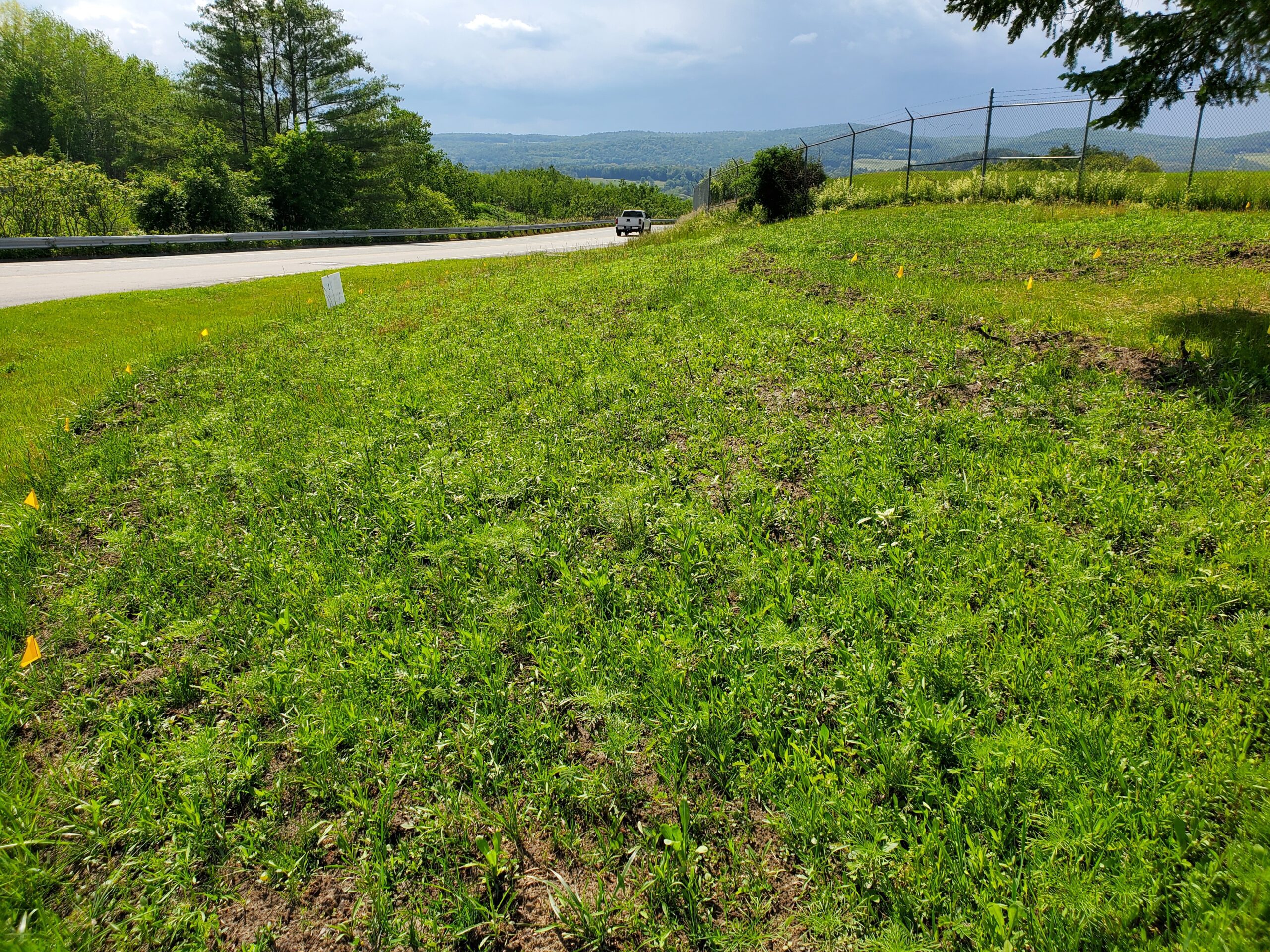 Located in planting Zones 5a and 5b, the seed mix included annual flowers like Patridge Pea, Indian Blanket, and Cornflower and perennial native plants like Butterfly Weed, Swamp Milkweed, New England Aster, Wild Lupine, and Ox-Eye Sunflower. The flowers began blooming in June 2023 (pictures below).