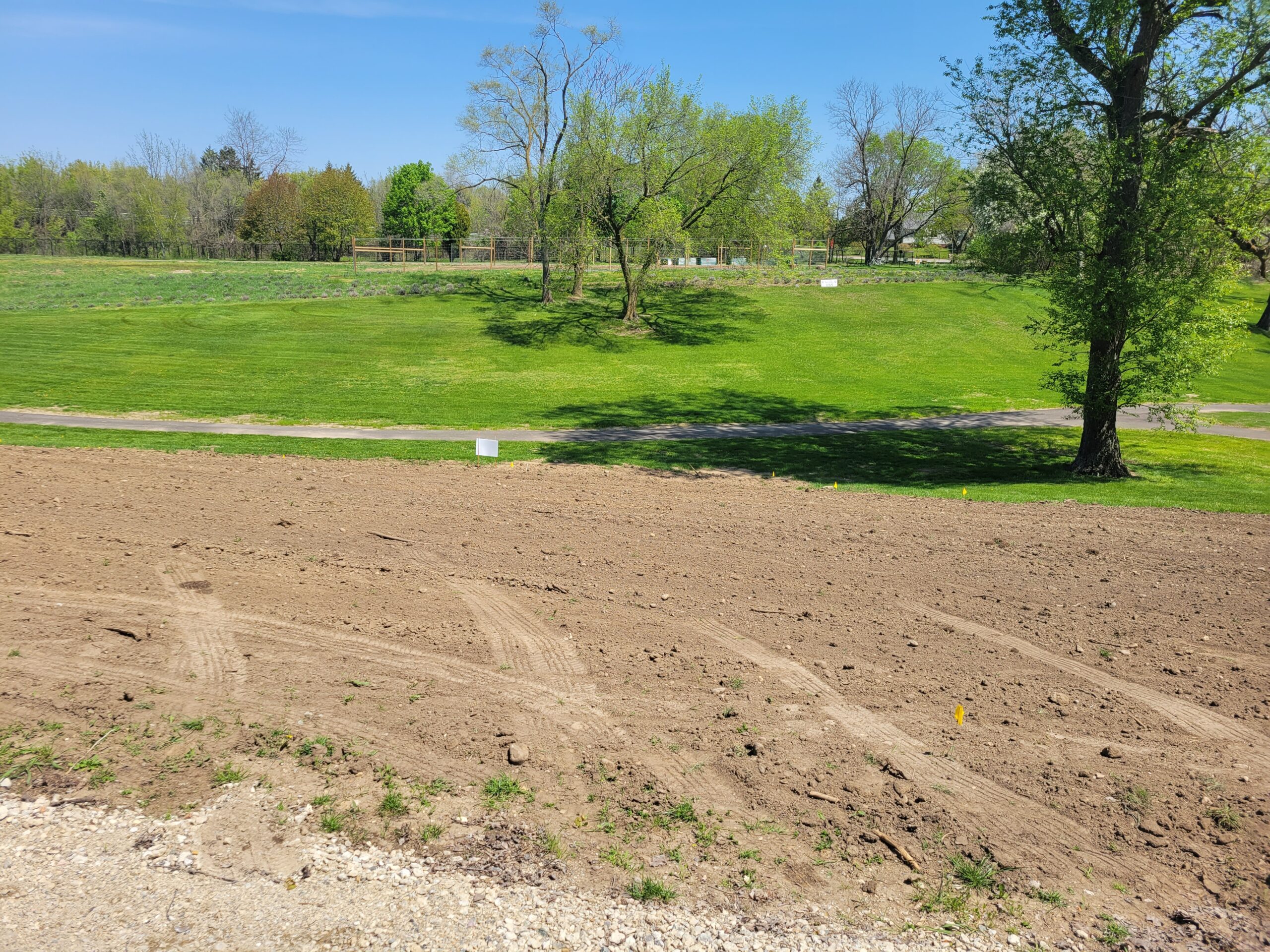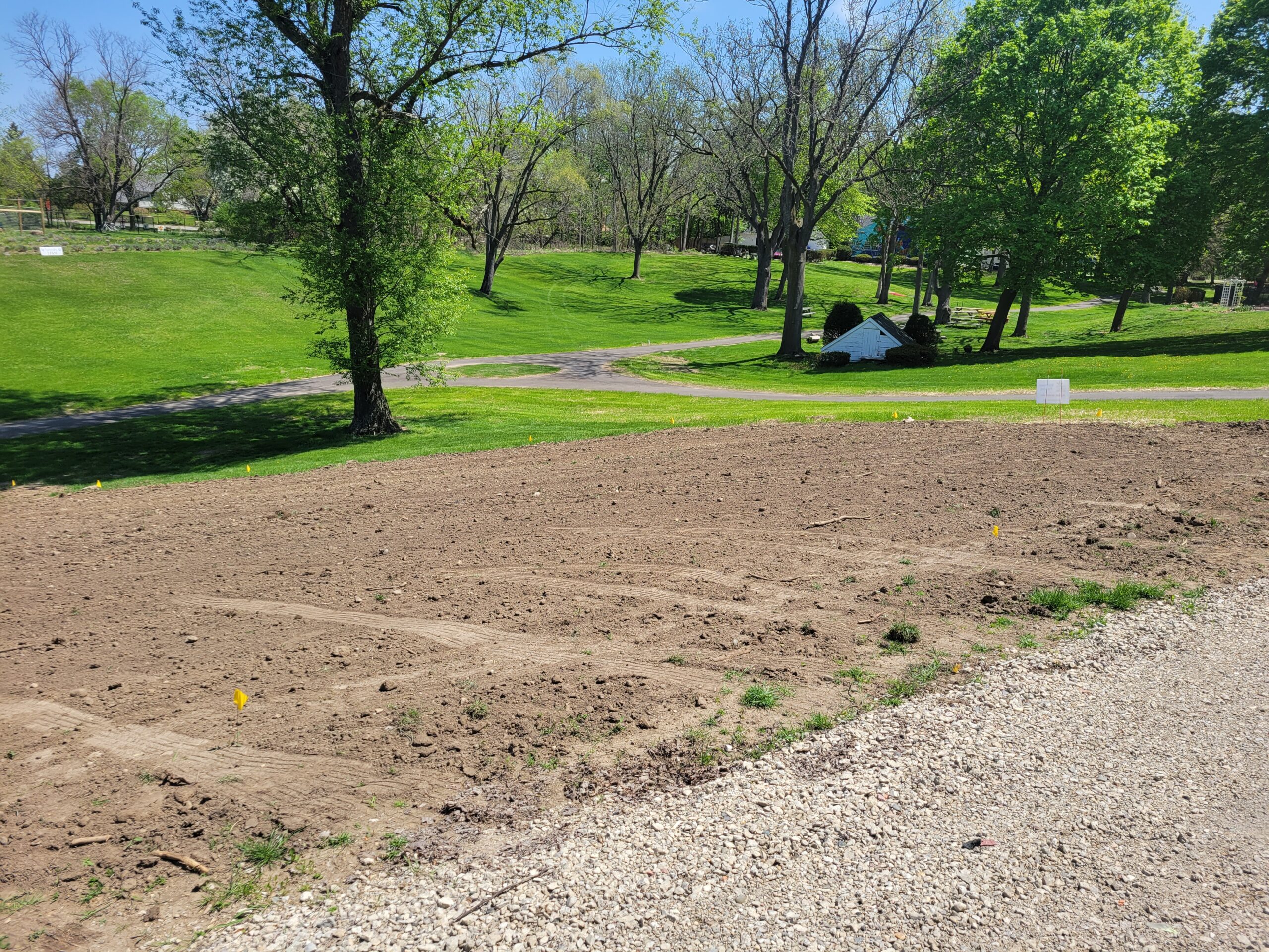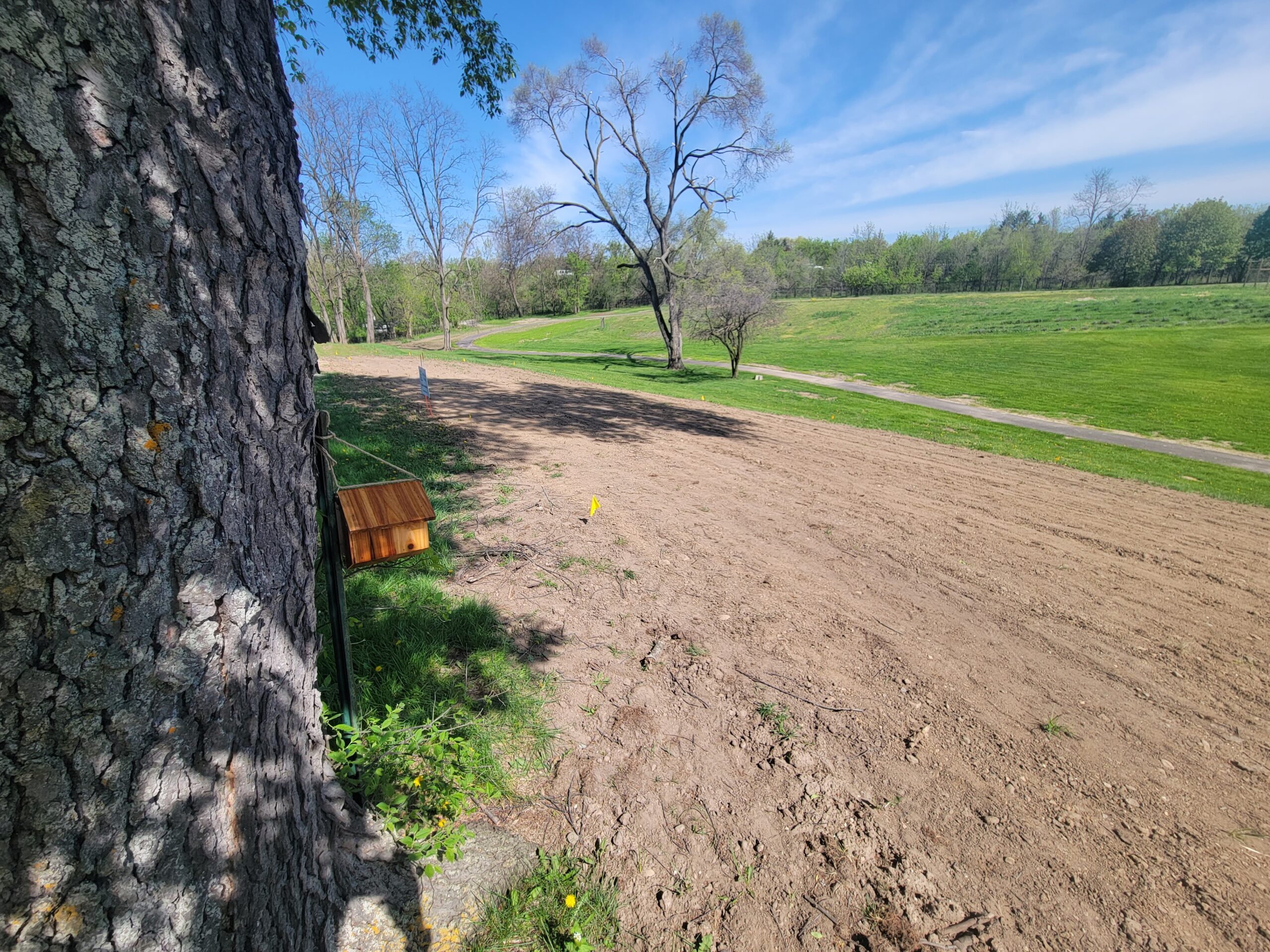The area was tilled two times in February and April before seeding. Two Mason Bee houses were also added in April.