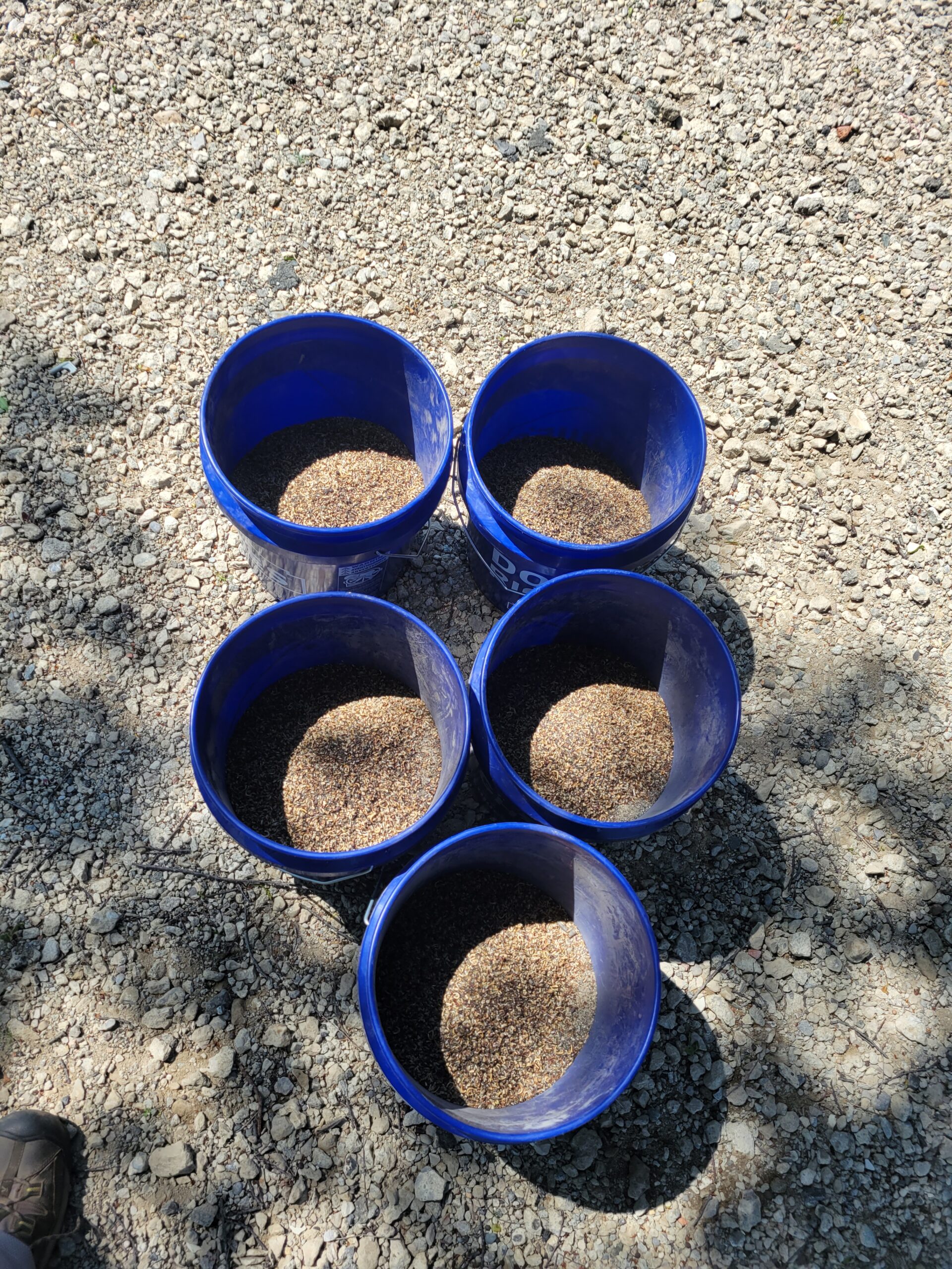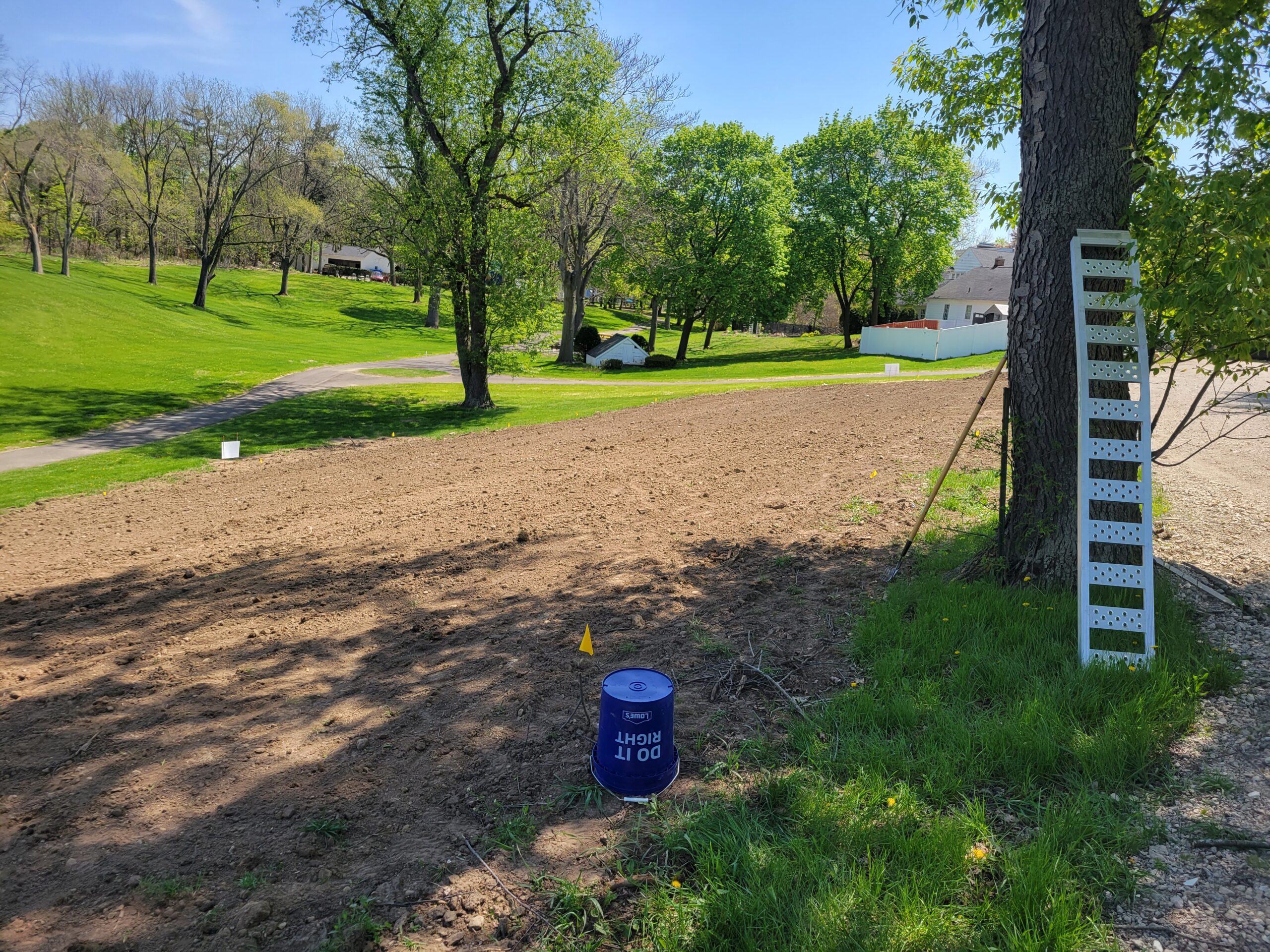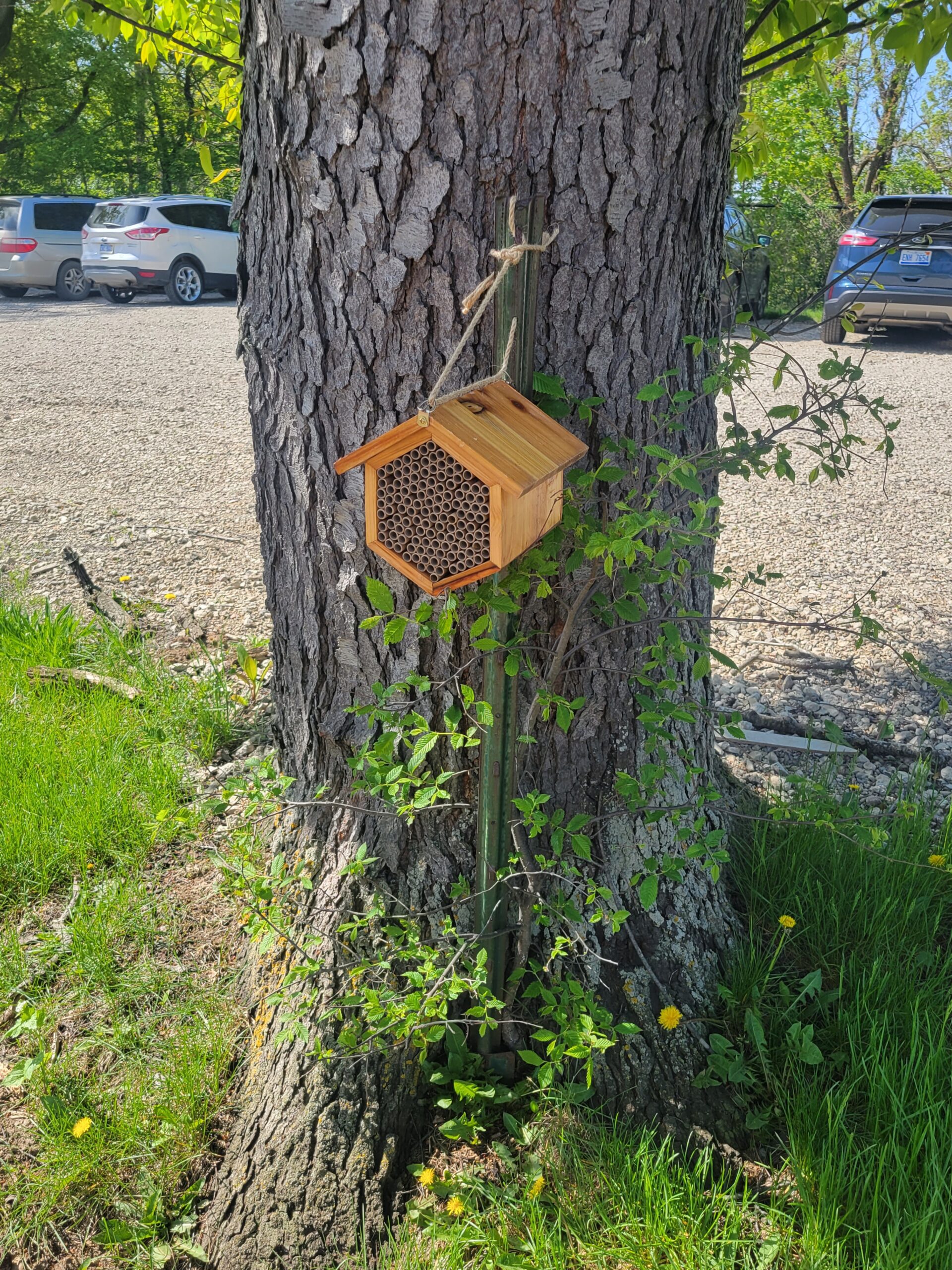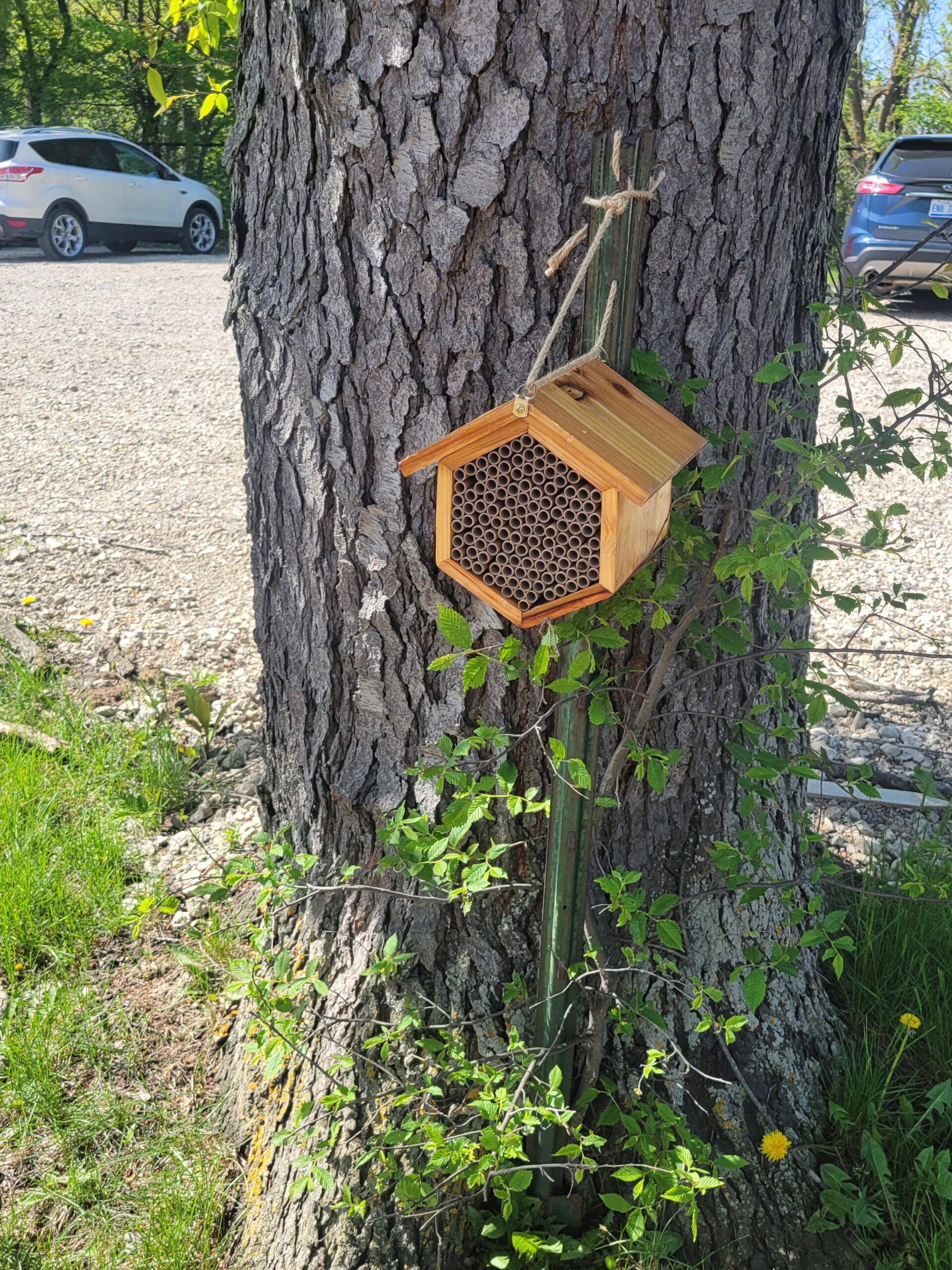 The area was tilled two times in February and April before seeding. Two Mason Bee houses were also added in April.