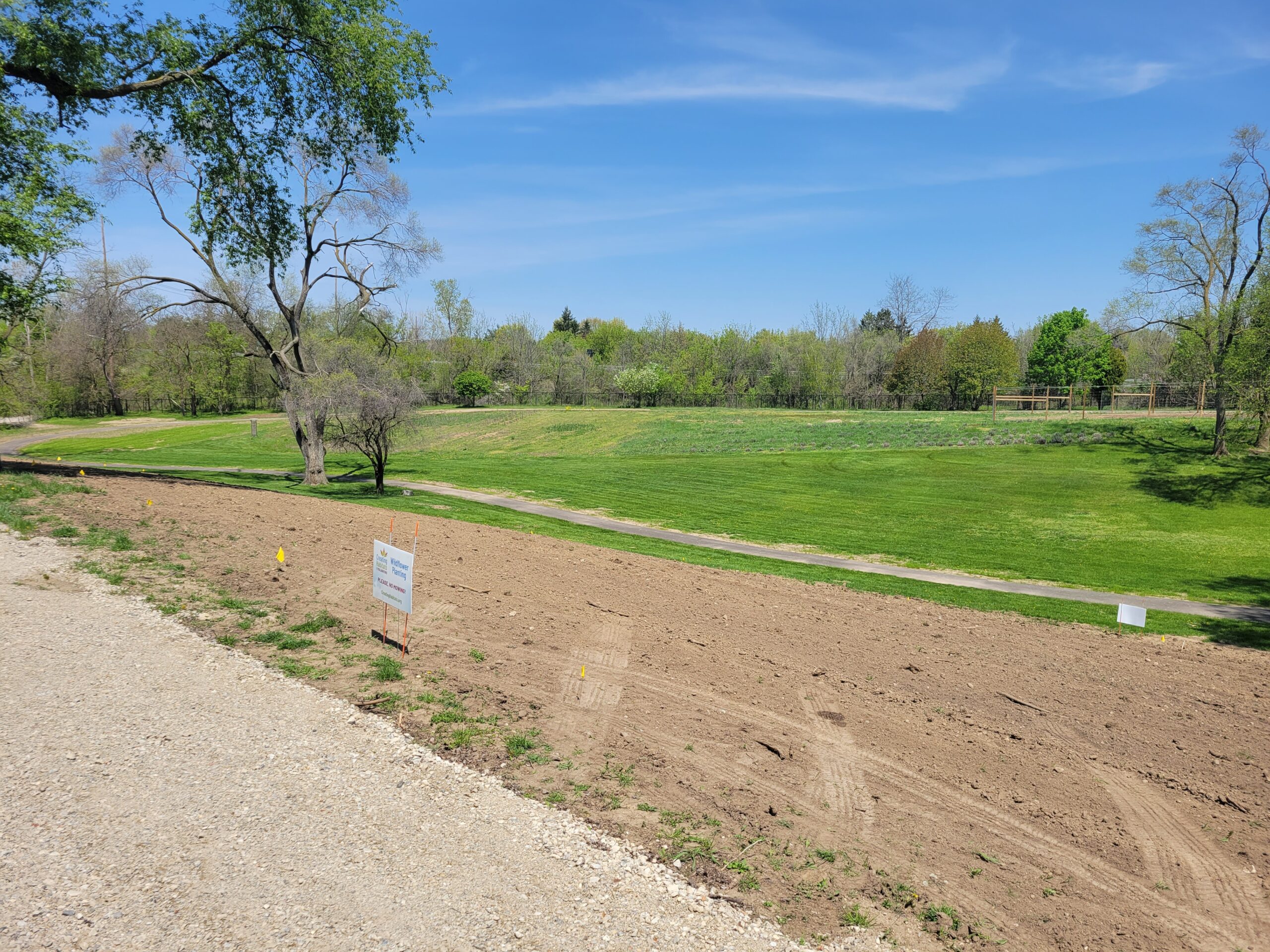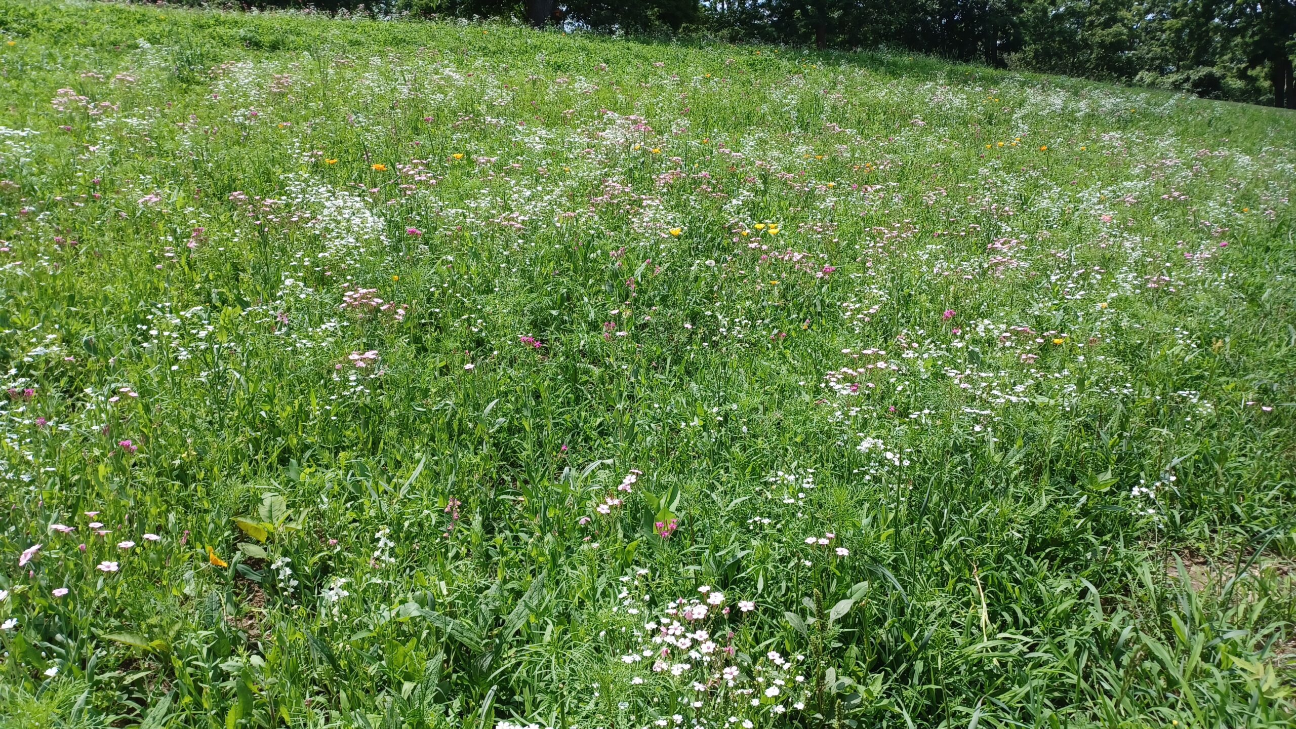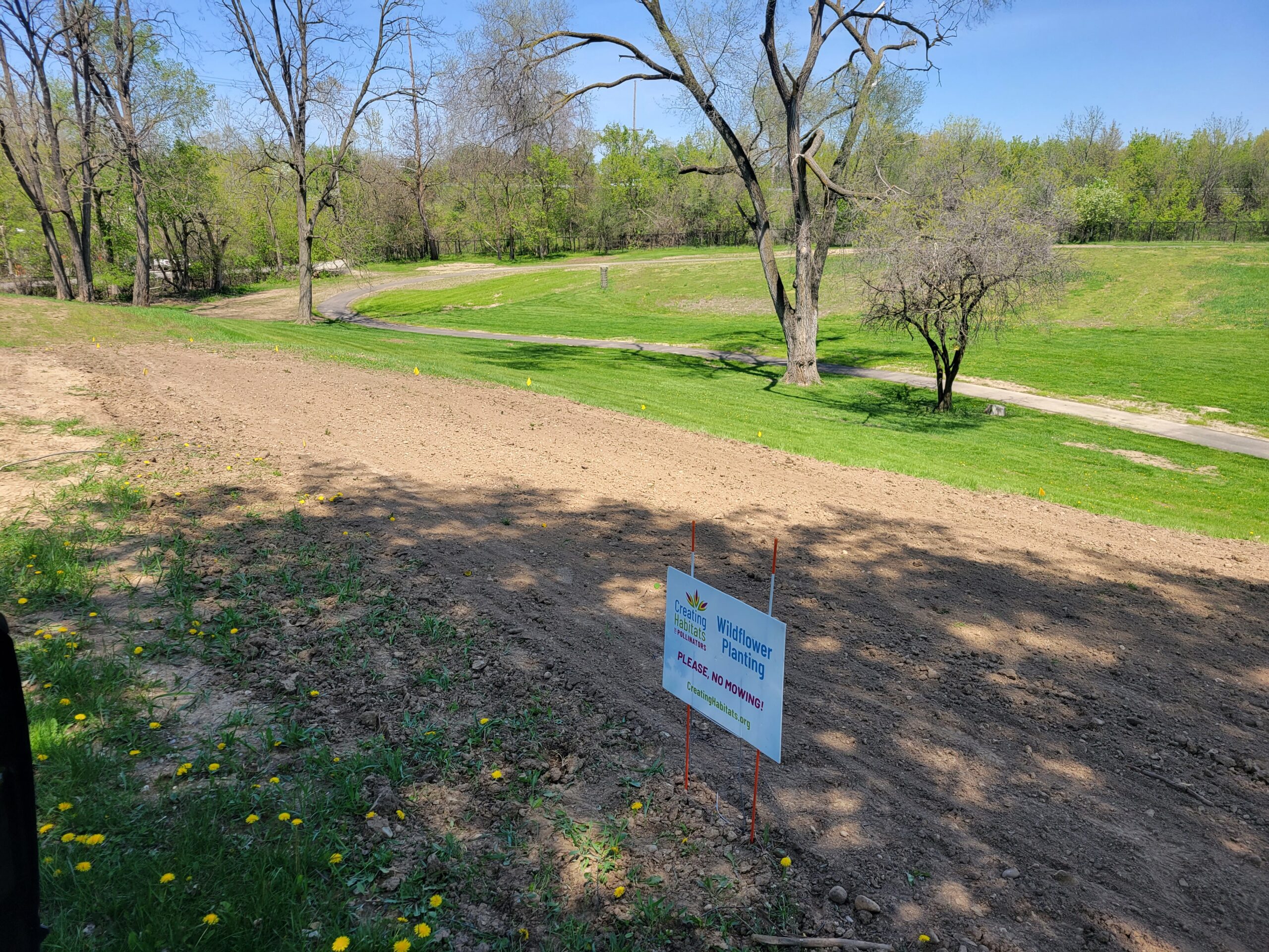 In April 2023, Creating Habitats for Pollinators (CHP) planted >25,000 sq. ft. (~ 1/2 acre) of wildflowers along a hillside at the campus of the Living and Learning Center in Northville, MI.