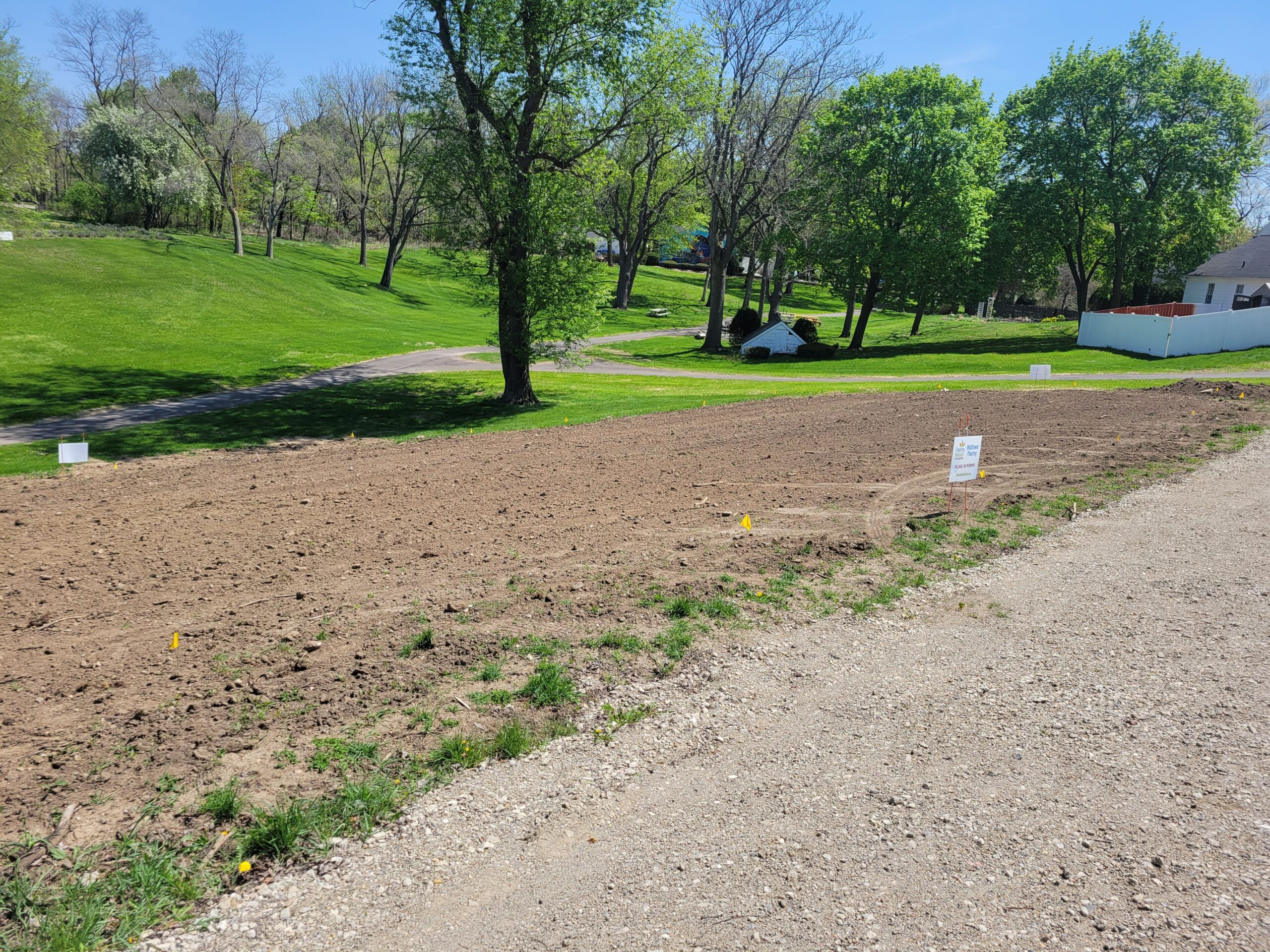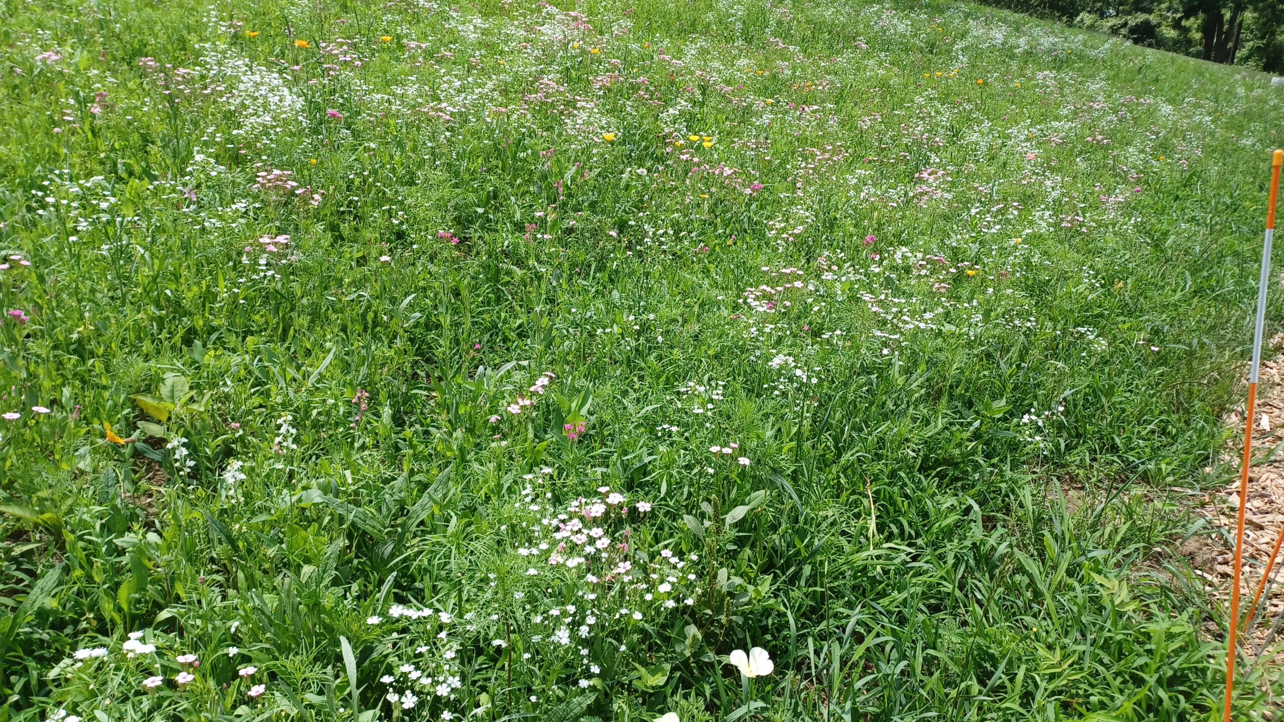 Located in planting Zone 6, the seed mix included annual flowers like baby’s breath and poppies and perennial native plants like Butterfly Weed, Lance Leaf Coreopsis, Purple Prairie Clover, Red Columbine, Wild Lupine, and Blanket Flower.